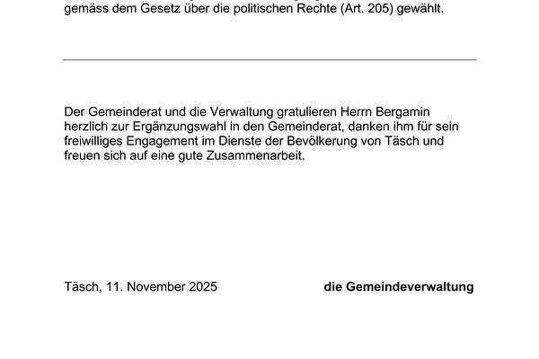 Resultat Ergänzungswahl Gemeinderat 30. November 2025