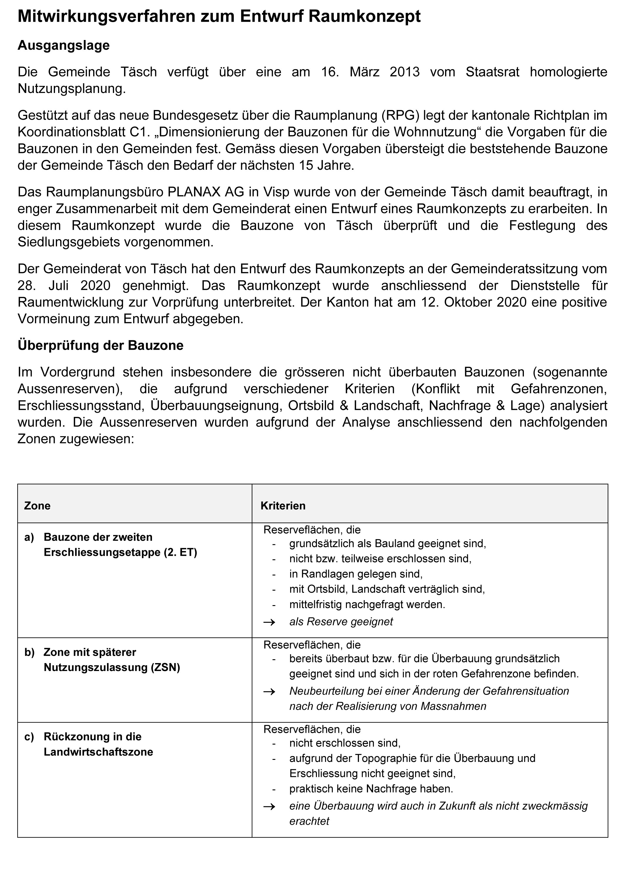 | Ortsplanung & Bauwesen | 027 966 46 68 | kanzlei@taesch.ch |